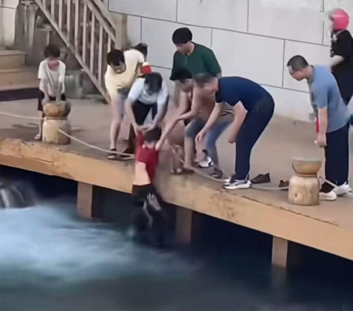 张海云托举起落水儿童。